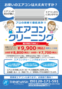 4月より、LINE・メールでのお申込み限定で、エアコンクリーニング割引きサービスを行っております。