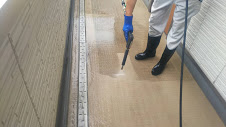 専用洗剤を塗布し、高圧洗浄機でクリーニングしていきます。