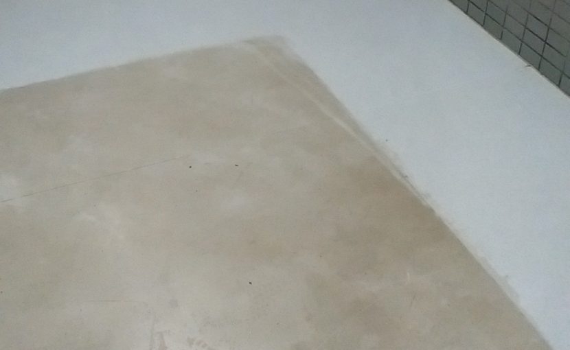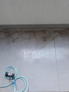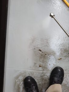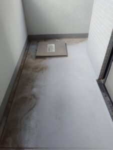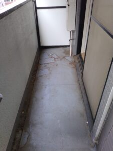 新宿区のマンションで行わせて頂いたベランダ床清掃の作業風景です。